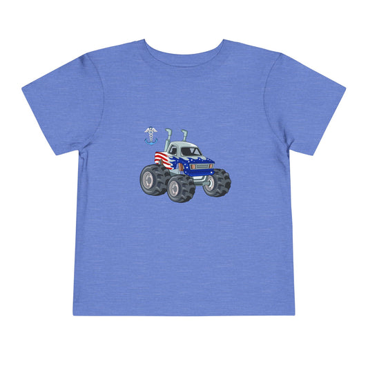 Toddler Tee — Patriotic Monster Truck with Anchor Graphic